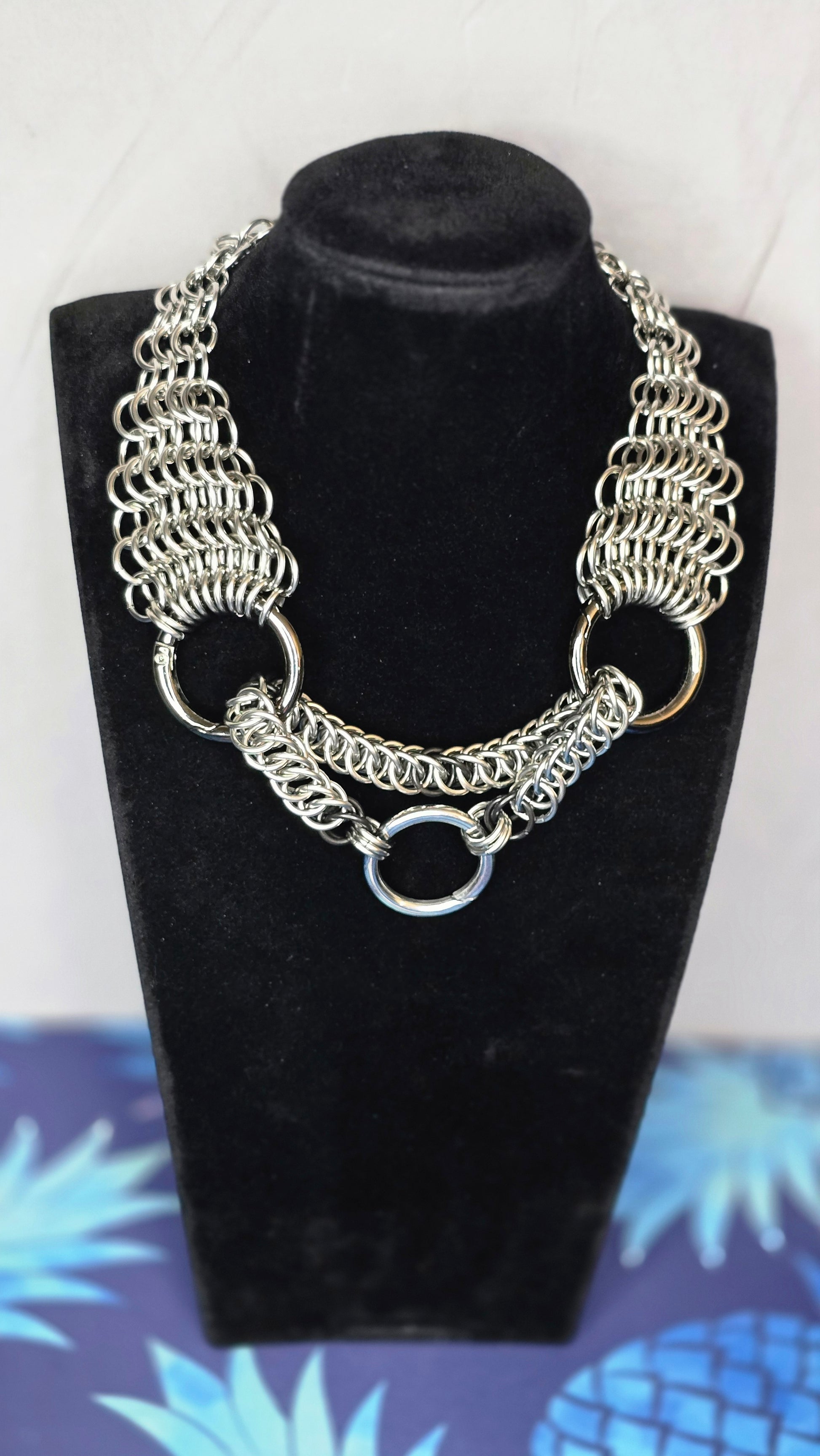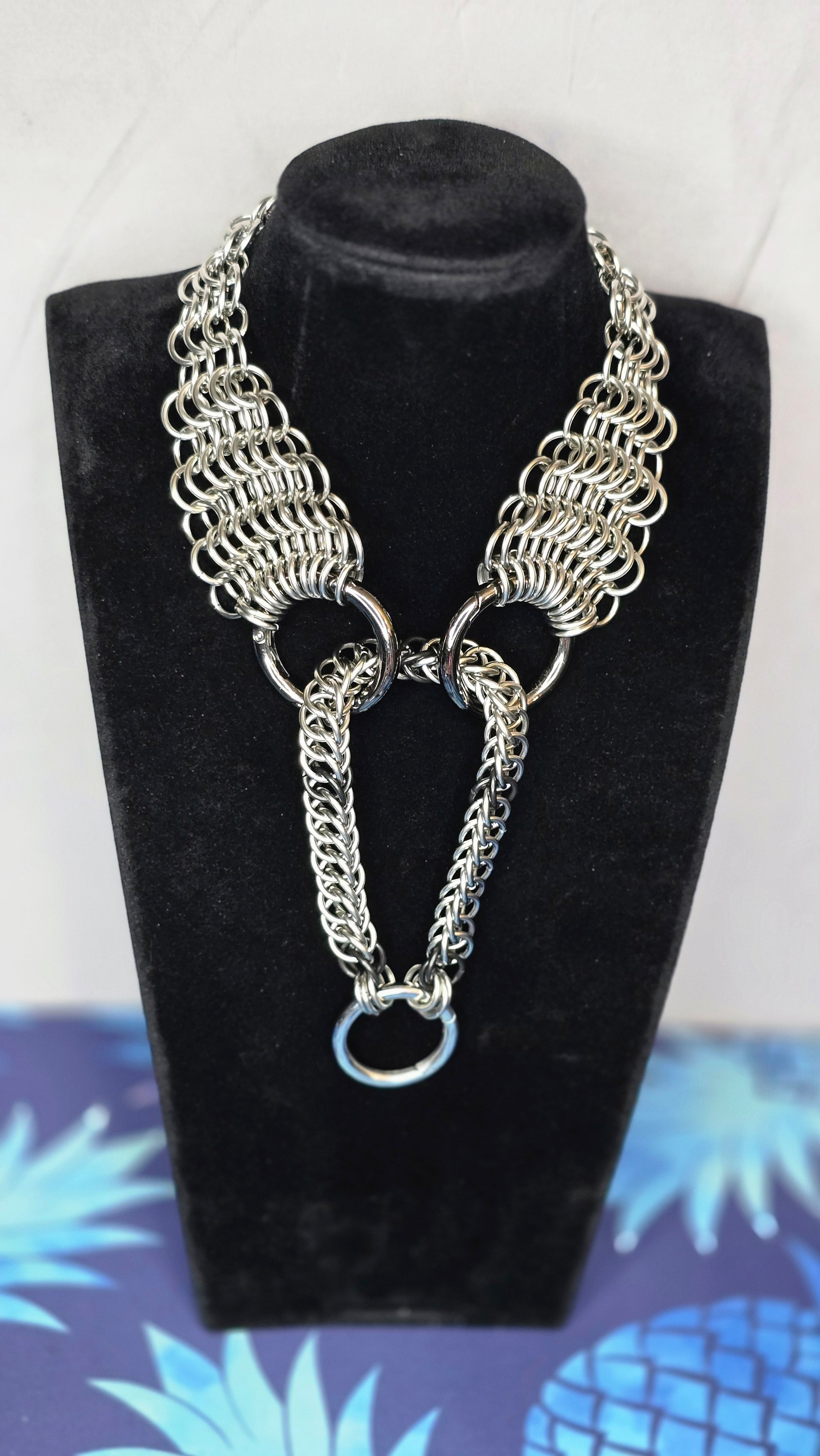 Inspired by Rabid Wolf, here is my take on a very sinister yet beautiful collar. The cold stainless steel lays very well on the neck and gives just the right amount of pressure for any occasion. Made of all Stainless Steel, this build gives off a very nice medieval look.