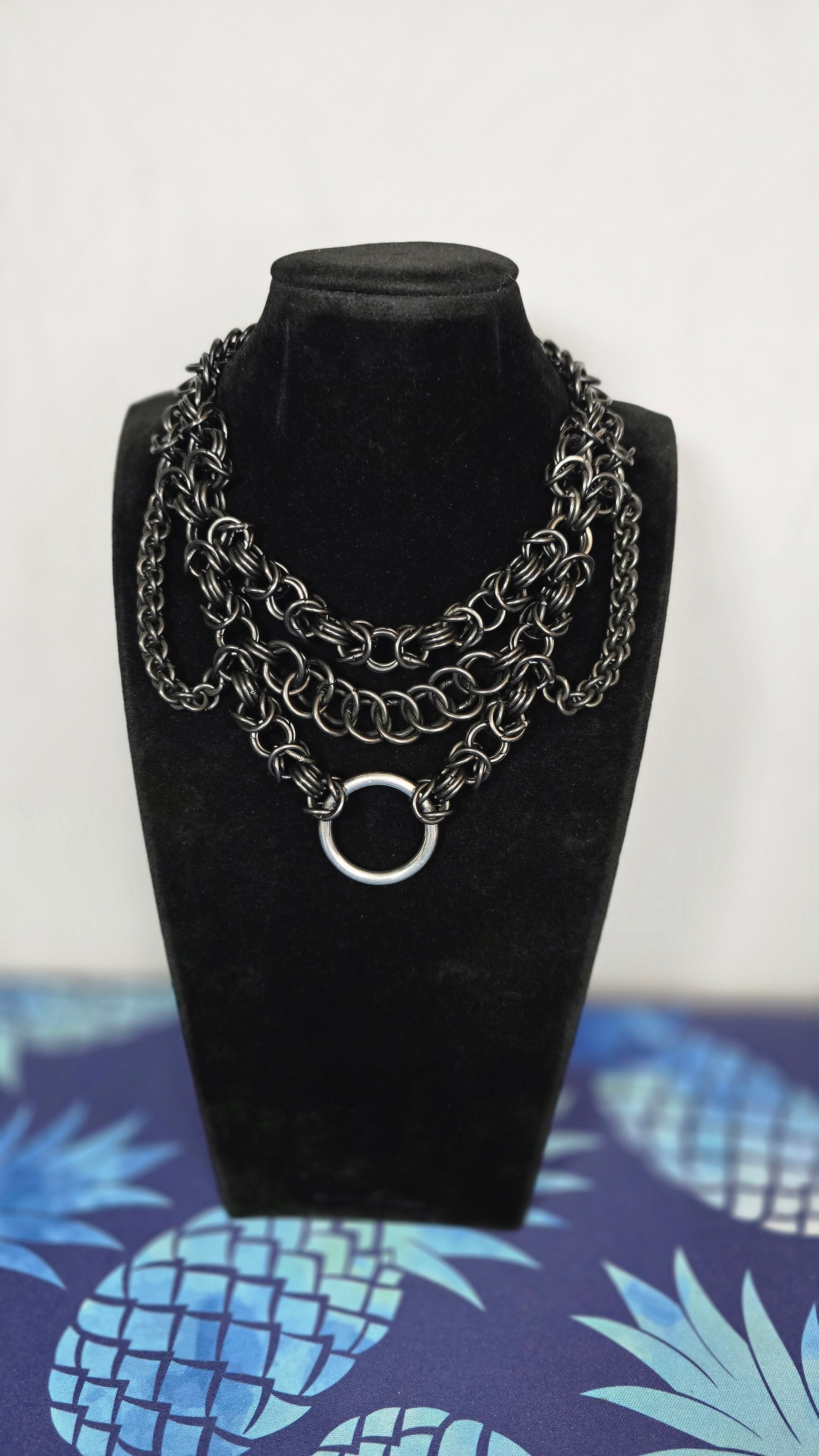 Take a step back in time to simpler times, and showcase true beauty! This Ancient Roman times inspired piece does just that. Made of all Stainless Steel in either Stainless or Blackened steel. This unique necklace is sure to be the talk of the evening!