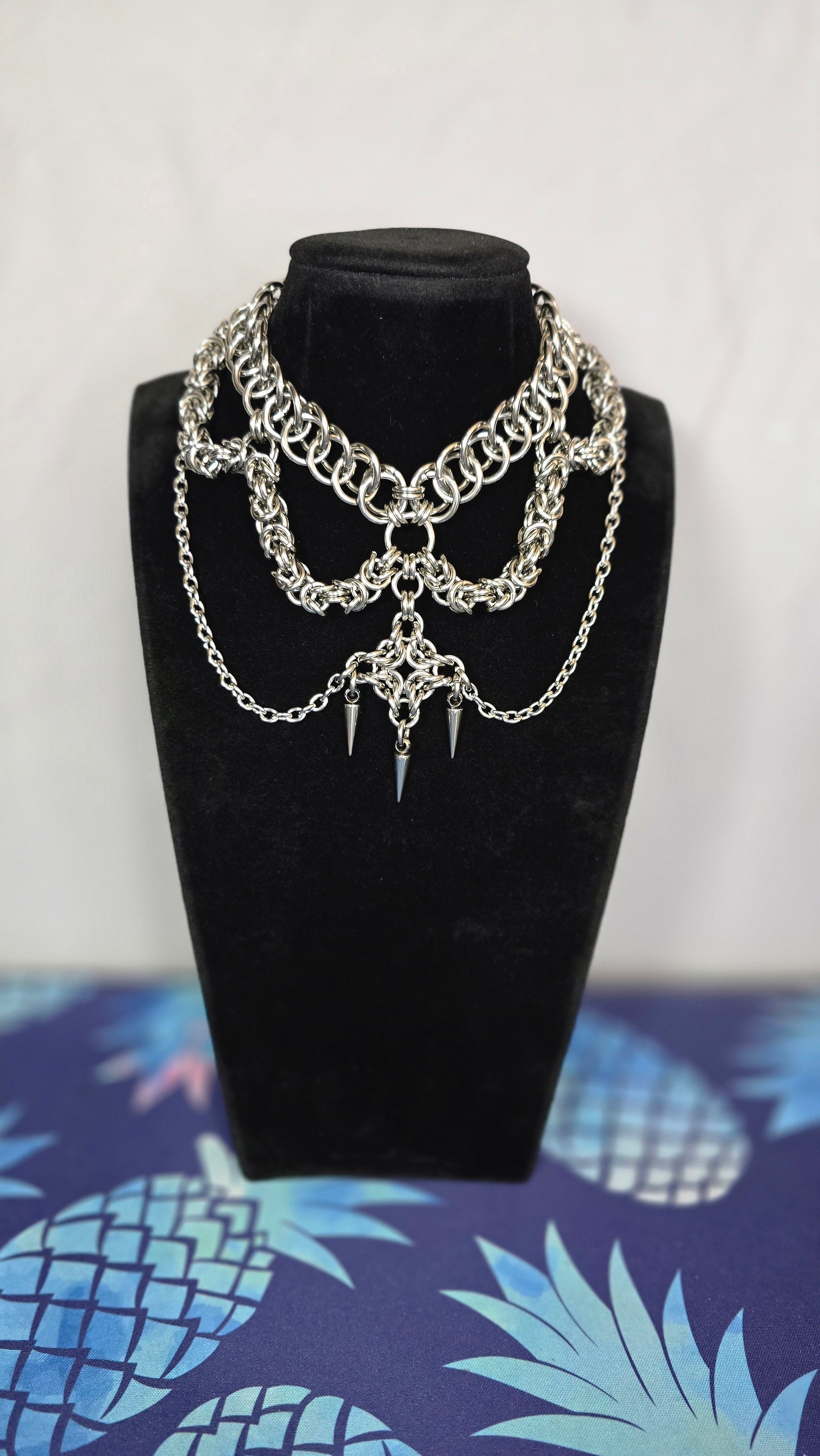 Here is an original piece that will sit perfectly on your neck for any occasion! Made of all stainless steel, it is durable yet classy! Can be worn as a choker or like a traditional necklace.